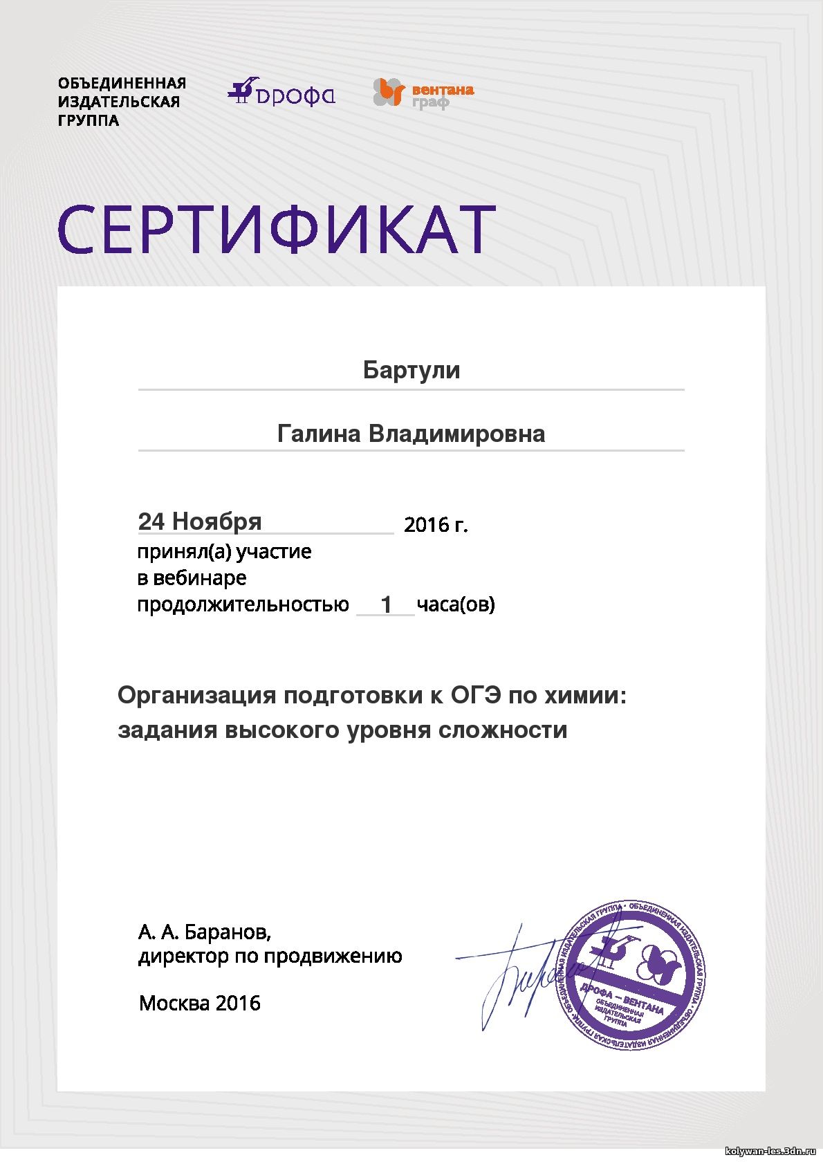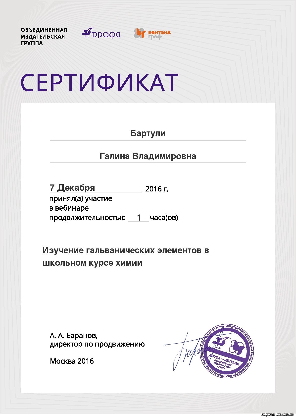 Сайт учителя химии, биологии Бартули Галины Владимировны